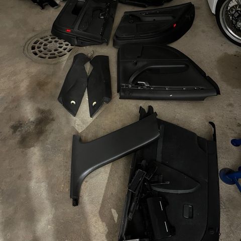 Audi A4 B6 kangas penkit, kertaalleen pestyt mutta joutuu pesemään uudestaan jos haluaa kunnolla puhtaaksi. Takapenkissä pieni reikä näkyy kuvassa.