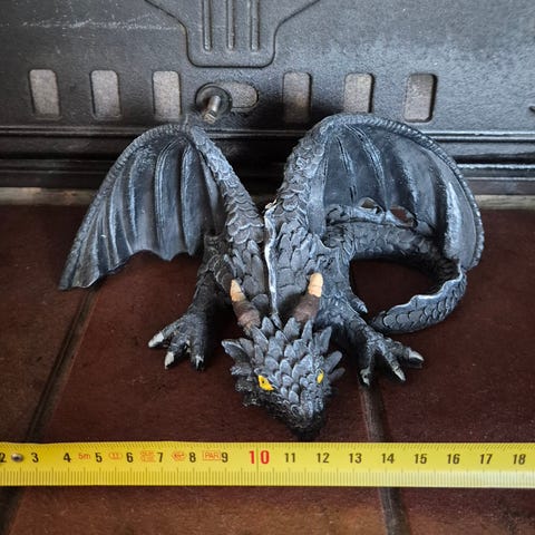 Toimintahahmo on noin 19 cm pitkä. Siinä on liikkuvat siivet, jalat ja leuka, jotka tekevät siitä eläväisen.