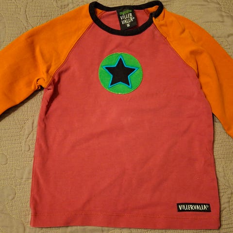 Myydään kuvanmukainen, siistikuntoinen t-paita. Koko 86 cm. Villervalla. Hinta 6 e.