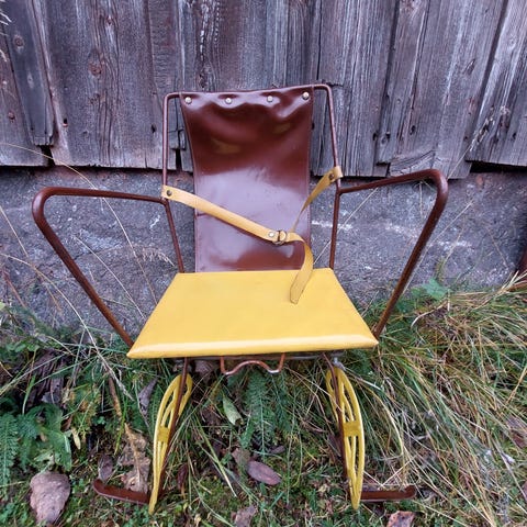 Vintage 70-80-luvun lasten punakeltainen pyöränistuin. Tämä vaikka rekvisiitaksi. Löytyy myös toinen keltaruskea pyöränistuin. Nämä 15e kpl.