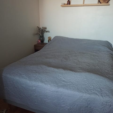 (Mahdollinen pesu jää ostajalle, sillä en peiton koon ja painon vuoksi voi pestä sitä nykyisessä koneessa.) Siistissä kunnossa, hieman nukkaa/pölyä voi olla.