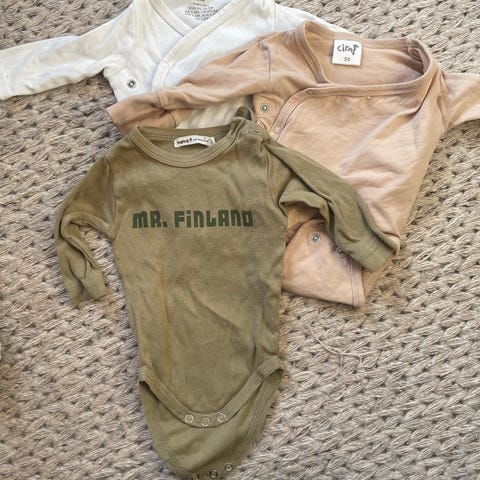 Myydään yhdellä lapsella käytetty siisti bodysetti koossa 56.