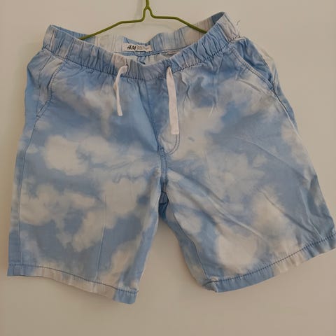 Siistit shortsit taskuilla sivuilla sekä takana, pari tahraa lahkeessa, muuten pinta siisti, ei nyppyä. leveys n.30cm ja lahkeen sisäpituus 20cm.