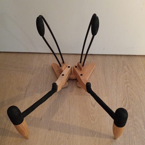 Kaksi jousitettua tukivipua taipuvat otelaudan eteen kun kitara asetetaan paikalleen haarukkaan. Haarukka on päällystetty iskuja vaimentavalla materiaalilla.