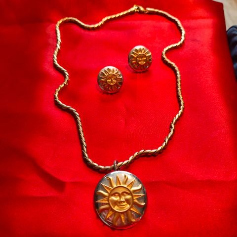 Iso meritähti-riipus tai -rintaneula, halkaisija 5,8 cm ja meritähti-korvakorut halkaisija 3 cm.