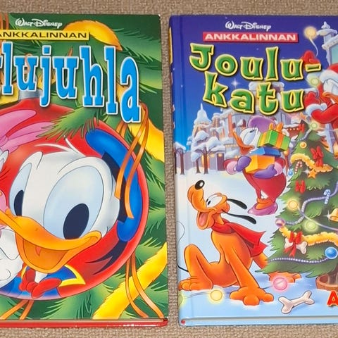 Aku Ankka näköispainos vuodelta 1953, ja kolme muuta kovakantista kirjaa.