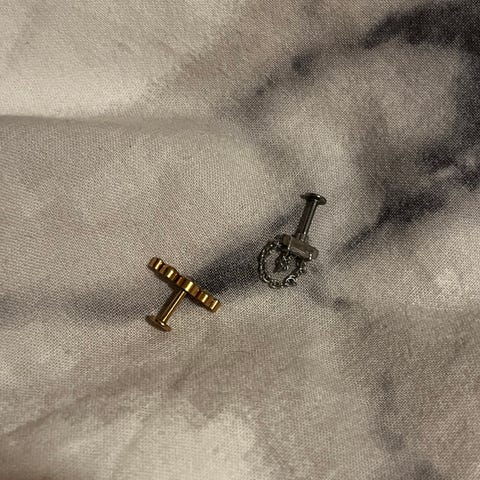 3 rengas korvakorut. Värjätty itse kultaisella ja hopeisella matta kynsilakalla.