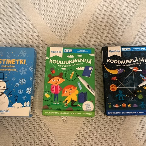 Myydään lasten puuhakortit. Oppi&ilo. Mainiot aakkoset. Kaikki kortit hyvässä kunnossa ja kaikki kortit tallella, ainostaan paketti kadonnut. Oppi&ilo-tusseja saa kaupasta.