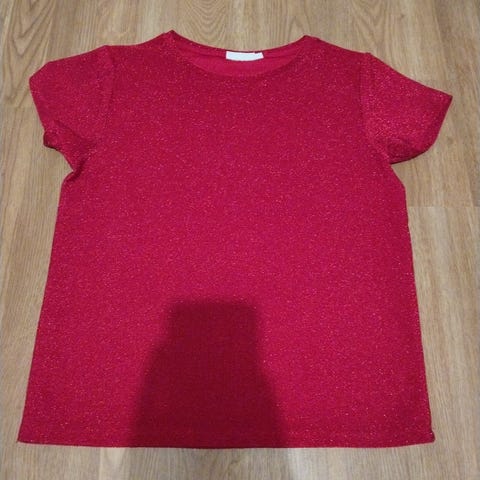 Upealla kimaltelevalla rusetti-kuviolla oleva T-paita. Tämä oli vain muutaman kerran käytössä, joten kimalteet tallella!