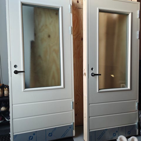 Ulko-ovet ovat musta/valkoisia. Nämä ulko-ovet on valmistettu kestävästä materiaalista ja se on suunniteltu tarjoamaan hyvän eristyksen ja turvallisuuden. Ovi on valkoinen ja musta ja siinä on moderni muotoilu, joka sopii useimpiin taloihin. Ei sisällä heloja eikä lukkoa. Ikkunoista erilliset ilmoitukset. Ikkunat tarkoitettu piirustuksessa olevaan asennukseen. Hinta on kappalehinta. Ylimmäinen musta ovi eli 1. kuva on aukaistu tehtaan kuljetuspaketista, muut ovat avaamattomissa kuljetus paketeissa. KULJETUS JÄRJESTYY