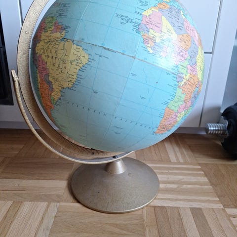 Venäläinen, tähtitaivaallinen maapallo puulaatikossa.