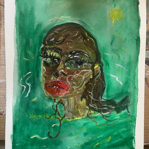 Realistinen akryylimaalaus A3 ”Meren väki”. Taidepaperilla