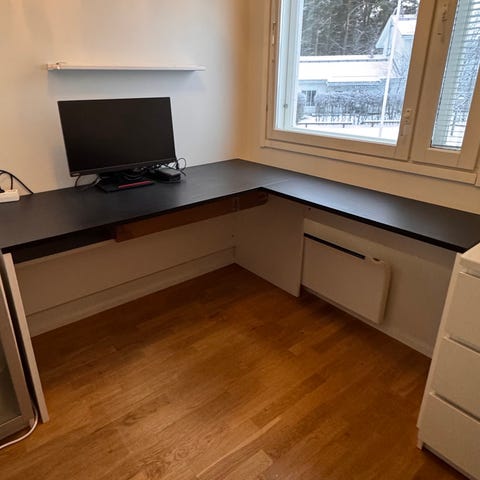 Pöytä koostuu kahdesta osasta 60 x60 ja 180 x60 .