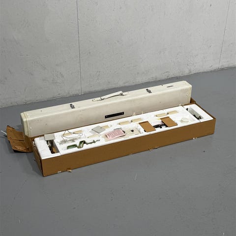 Toyota lace carrier for kniitting machines. It seems to be Lace Carriage For Toyota Punch Card Knitter Model K747 Knitting Machine. Warning - since I do not have access to a fitting Toyota machine, I cannot check or guarantee that it is fully functional. But visually it looks good, no rust, or broken parts.