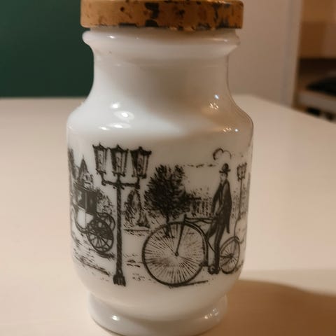 Tosi retro maitotölkkiteline. Ehjä, mutta kulumaa ja patinaa.
