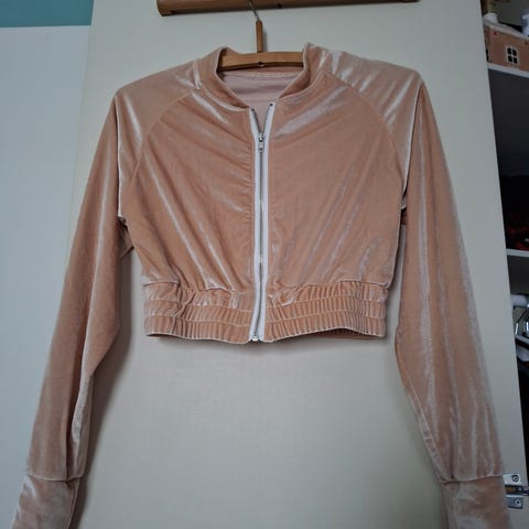 Beige, samettinen Amisu (ulkomailta) merkkinen jakku takki. Koko 36. Kaksi kertaa käytetty. Edessä 2 nappi kiinnitys. Konepestävä.