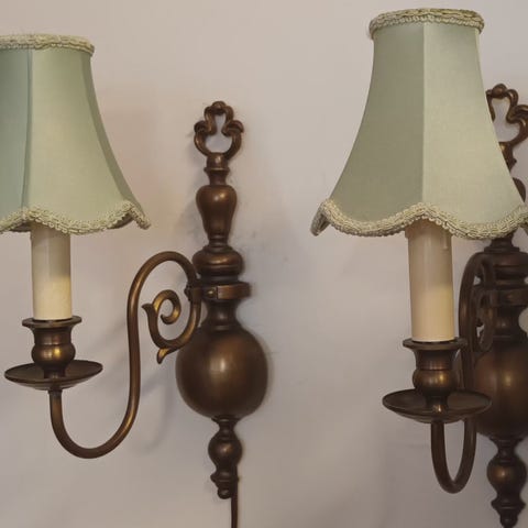 Ehjä, toimiva, vanha pöytävalaisin. Korkeus 63cm. Varjostimessa pieni rispaantuma.