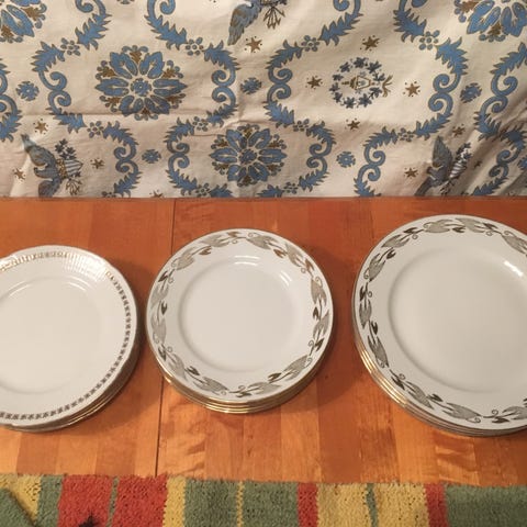 Vasemmalla Juvel 17 cm pullalautasia 5 kpl, 10€.