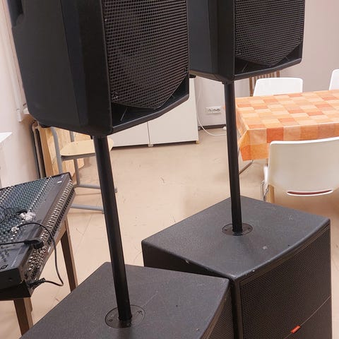 JBL PRX912 + SRX818SP PA järjestelmä