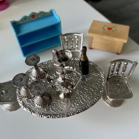 Retro Egg-tuoli nukkekotiin. Käytön jälkiä on, kuten kuvissa näkyy, mutta toimii leikeissä ja koristeena.