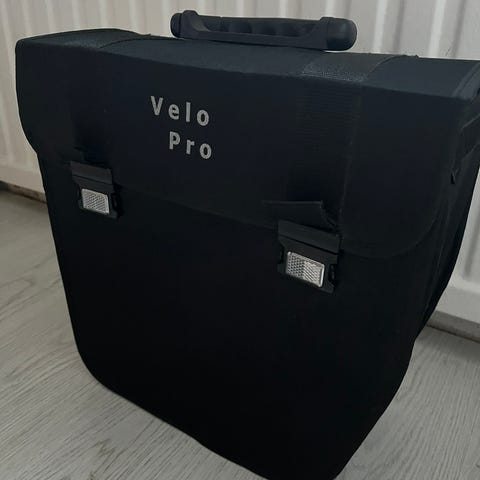 Polkupyörälaukku Velo 2, tilavuus 22l , kaksipuolinen pyörälaukut, sivulaukut, etutaskut , heijastinauhat, päällä kiinnitys lenkit esim teltalle, hieman käytetty , uudehko kumminkin