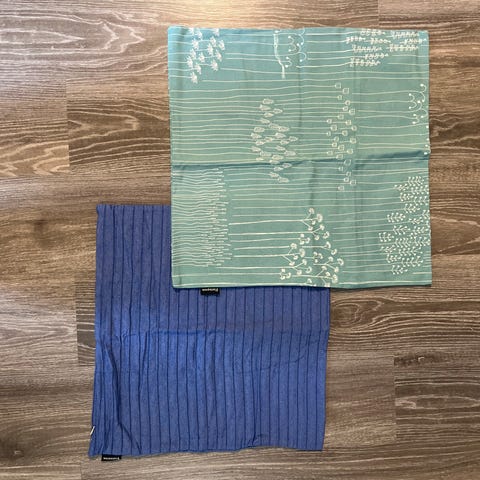 Finlayson tyynynpäälliset 2 kpl, mitat n. 38 x 40 cm. Uudenveroiset. Hinta yhteensä 8 €.