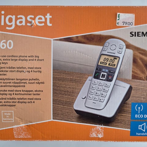 Myydään hyväkuntoinen vähänkäytetty Siemens Gigaset C59H Langaton "pöytäpuhelin/lankapuhelin". Langallisessa Tukiasemassa on kaksi ladattavaa AAAparistoa, jotka latautuvat automaattisesti. Gigaset C59H Langaton luurin kantama ulkona 300 metriä ja sisätiloissa 50 metriä. Puhelimessa on korkealaatuinen TFT-näyttö eli valaistu graaffinen värinäyttö (65000 väriä), valaistu näppäimistö, kaijutin toiminto, melodiset soittoäänet, puhelinluettelo 150 numerolle, tekstiviestitoiminto, itkuhälytin. Mukana tulee myös ohjekirja: suomi, ruotsi, englanti.