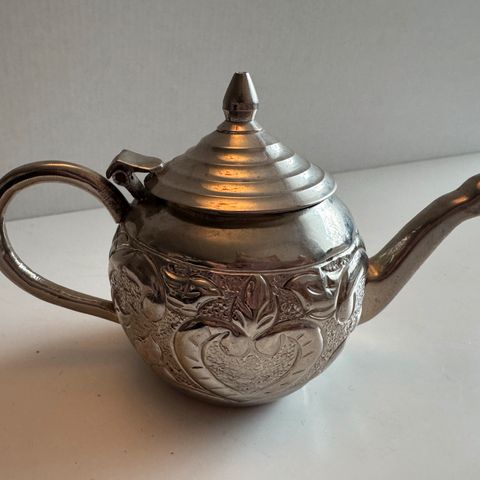 Upea vanha koristeellinen teepannu jalustalla. 1900 luvun alkupuoli.