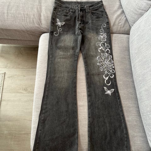 Never denim mustat revityt farkut (polvissa), koko S
