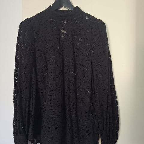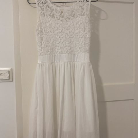 Hyväkuntoinen pitsitunika tai mekko, vuorillinen paitsi hihat, hieman alaspäin levenevä helma, kokonaan pitsiä, väri valkoinen koko M