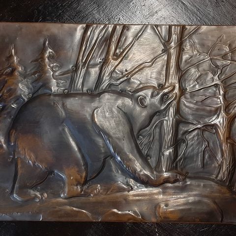 Myydään peltinen karhu taulu.