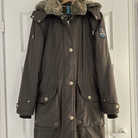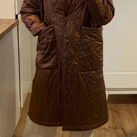 Marita Huurinaisen välikausitakki (ohutvanu), pitkä, kaksisuuntainen vetoketju, a-linjainen, lapussa koko M, mutta olkapäistä vastaa kokoa S. Omien leveiden harteiden vuoksi käytetty kolme kertaa. Kainalo-kainalo 50 cm edestä + takaa 50cm. Ja takin pituus kaulus-helma 100cm. Ovh. 349e. Noutona Kerava, Tampere tai toridiili. Mukaan saa Marita Huurinaisen kangaskassin.