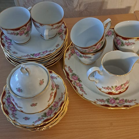 Rörstrand Brilliant, kahvikupit, tassit, kakkulautaset, kermakko, sokerikko