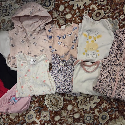 Muissa paitsi kauluspaidassa ja lyhyt hihaisessa bodyssa on hieman käytönjälkeä. Voin myydä myös yksittäin.