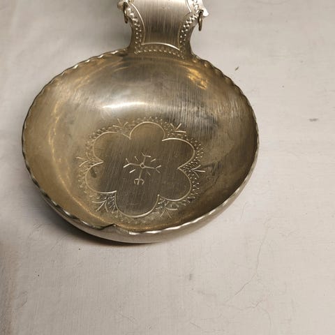 Myydään Jokkmokks Tennin tinainen kuksa. Ruotsalaista käsityötä. Kuvassa Sarakka-jumalatar.