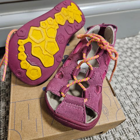 Myydään kahdella lapsella olleet mutta yhä hyvässä kunnossa olevat Affenzahnin ihanan kevyet Tiger-puuvillatennarit. Käytön jälki näkyy lähinnä vaaleankeltaisen kankaan tummentumina, pohjat ja kärjet yms. ovat edelleen hyvässä kunnossa.