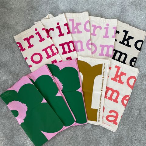 Marimekko teksti lukee kasseissa.