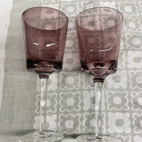 Kauniit jalalliset lasit. Viisi lasia. Siistit ja ehjät. Mitat on korkeus 17 ja halkaisija 6.