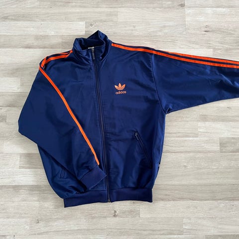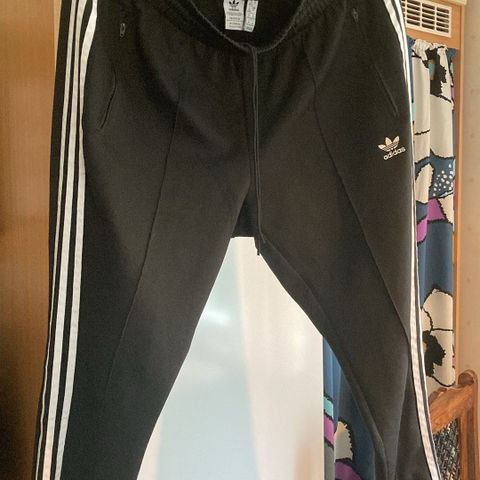 Adidaksen.verkkarit k.xs. Takana lahkeessa pieni n.1 cm kokoinen reikä.Pituus 92 cm, vyötärön leveys 33 cm. Vetoketjut lahkeissa.