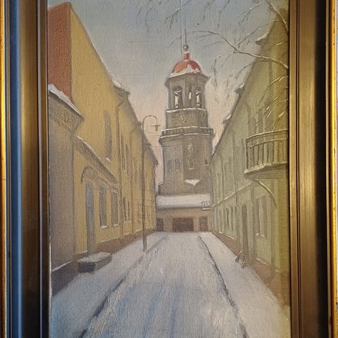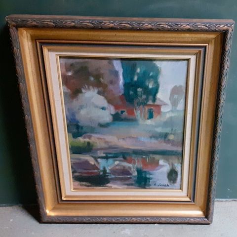 Lennu Juvela öljyväri kankaalle (levyllä) mitat kehysten päältä korkeus n.36cm leveys n.41cm kuva-ala korkeus n.22,5cm leveys n.28cm, vanhat kehykset