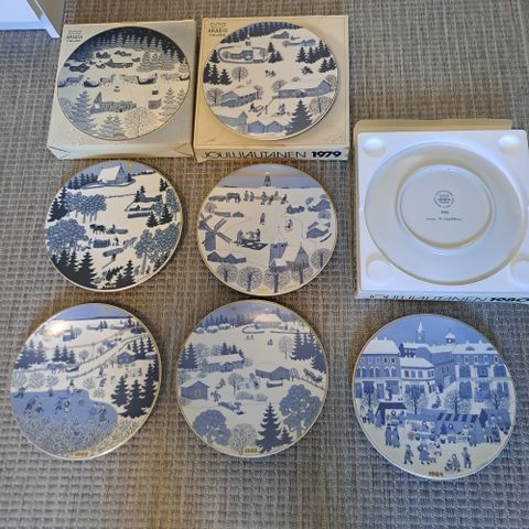 Signeeratut Raija Uosikkinen talviaiheiset lautaset.