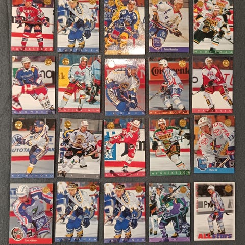 Erivuosilta liiga kortteja sit on maajoukkue kortteja ja Nhl kortteja. Mukana muummuassa Jesse puljujärvi kärppien erikois kortti ja mackinnon Jamie benn