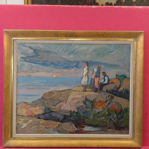 Benardin öljyvärityö "Kaksi tuulimyllyä" vuodelta 1964. Työn korkeus on 48 cm ja leveys 40 cm. Kehys 61 X 52 cm.