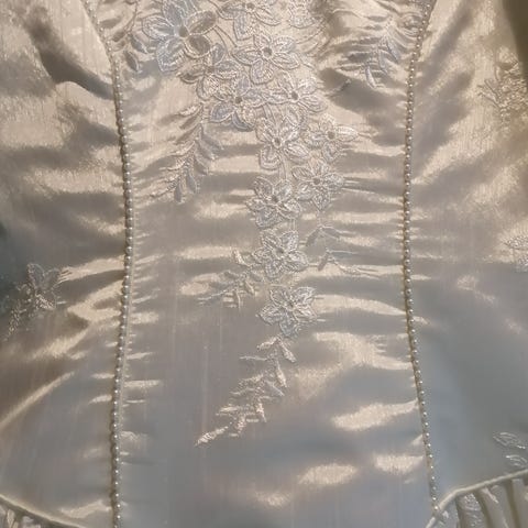 🤍 Värinä Ivory, eli norsunluu. Kangas satiinimaista kiiltävää, monia laskoksia. Istuu ja laskeutuu kauniisti päällä.