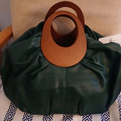 Laukun hihnojen mitta sopiva kainalon alle. Kovan ja leveän pohjan ansiosta laukku pysyy hyvin pystyssä ja tavarat löytyvät helposti. Laukun sisällä iso yhtenäinen tila ja vetoketjullinen sisätasku. Valmistaja Eliisa Marjaana.