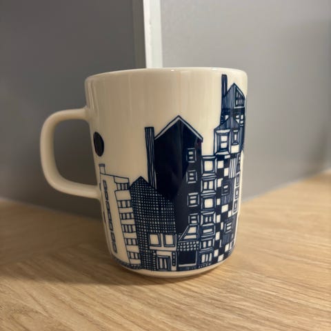 Marimekon Oiva Urdimbre 2 dl kuppi ja lautanen 12 x 15 cm