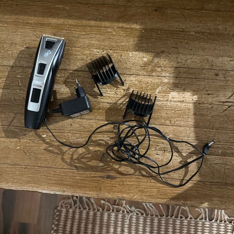Kuvan mukainen sähköinen hiustenleikkuri ja kahdet ohennus sakset