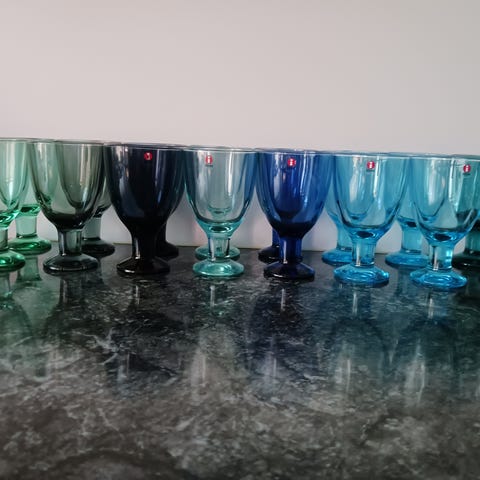Koboltinsiniset viinilasit 9 kpl, Iittala Verna.