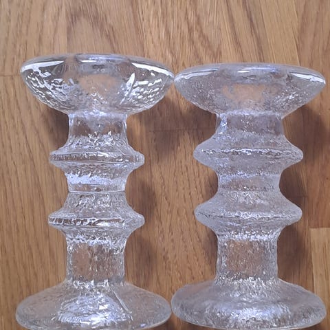 Turun kristallin 80-luvun kynttilänjalat 2 kpl. Yksi kristalli puuttuu (kuvassa).