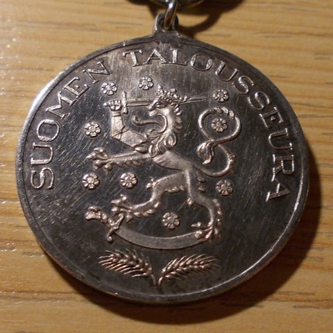 ESSO mitali Todistuksella. Terho Sakki. Valmistajan leimalla. Halkaisija - 70 mm.